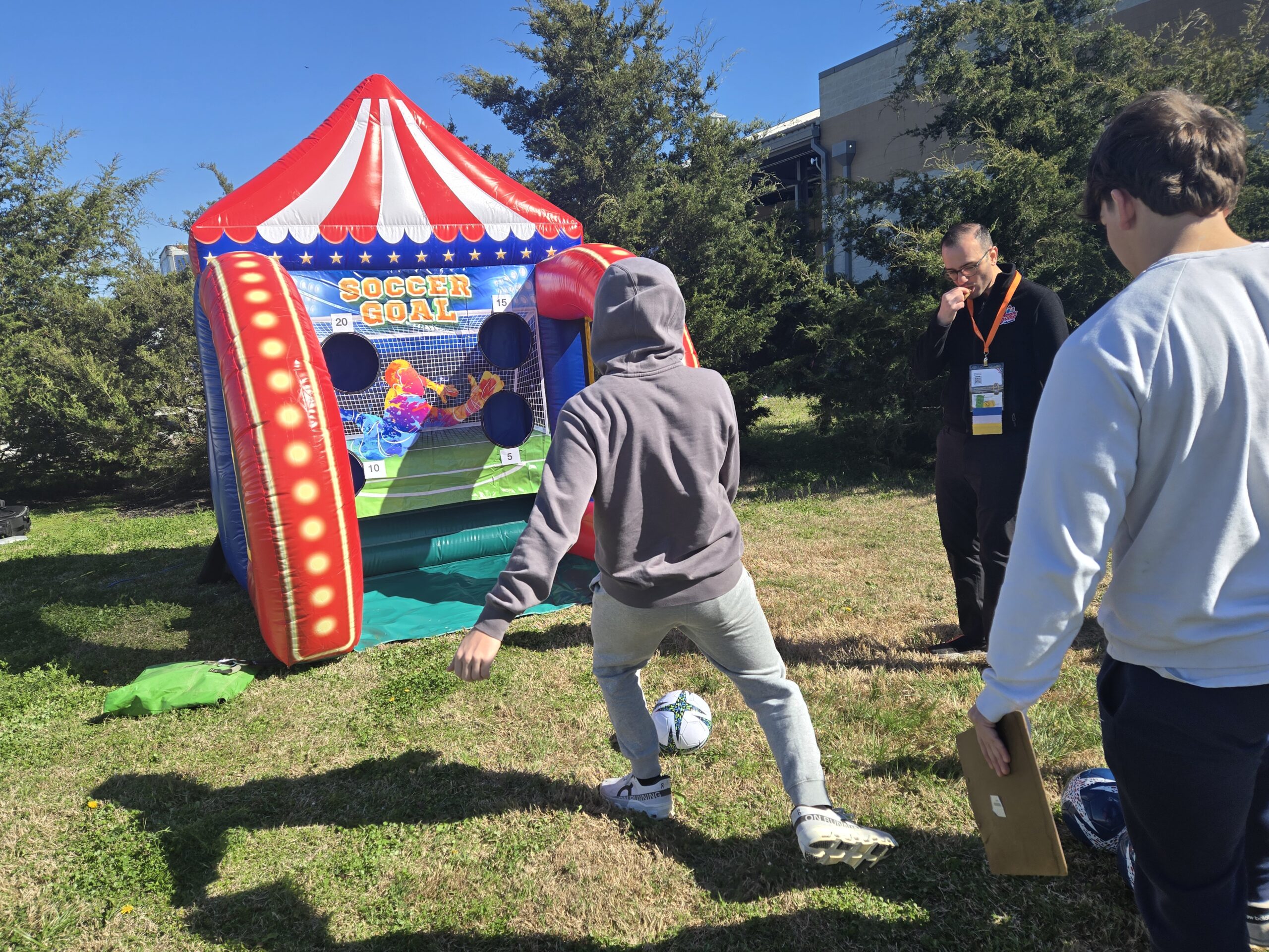The FUN PART—A Soccer Kick Challenge! Who would agree to do that? Magic Jump was 100% in for assisting and providing their carnival series of awesome games to provide a soccer kick challenge. AND—encouraged their staff to jump in to help supervise and score the game during the event. It was AGREED (because ideas come through collaboration) that the soccer kick challenge would also be provided for the 2nd place challenge finishers- THANKS YOU to Magic Jump for being a team player!!