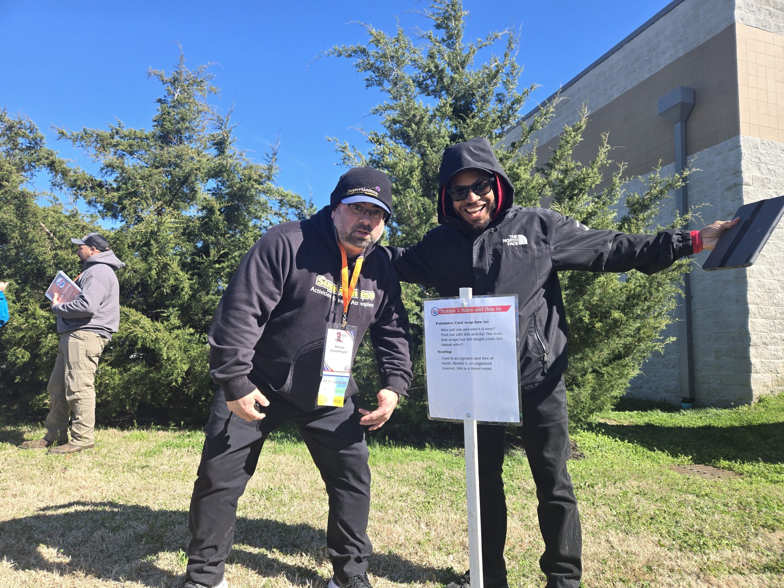It was a chilly 45-50 degrees, but the sun did shine brightly on the IOA Company Challenge Games. Each of SIX DIFFERENT challenge events were timed or scored and THREE teams emerged and the competitive vibes were 100% alive in the grassy field just outside the EXPO center.